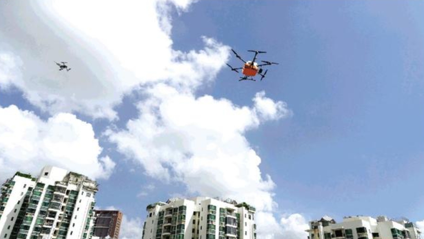 載著醫學檢驗標本的多翼無人機起飛,飛往8.4公里外的檢驗中心。樣品的采集管是塑料的,標本的裝載箱具有防爆功能。工作人員把標本箱裝進無人機的特制恒溫貨箱。南都訊記者...