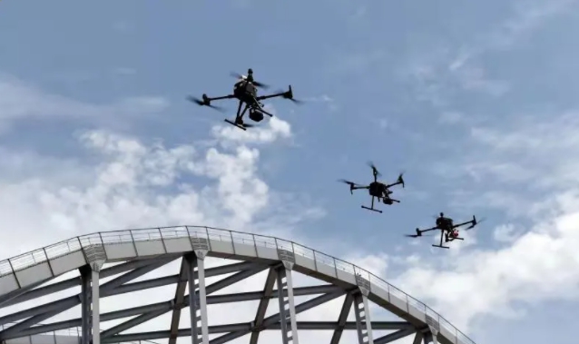 23日,京滬高鐵黃河特大橋上高鐵不時呼嘯而過,《環球時報》記者在橋下看到,三架搭載精密設備的無人機從橋下的移動全自動起降平臺次序起飛,編組成一個無人機小集群,按照...