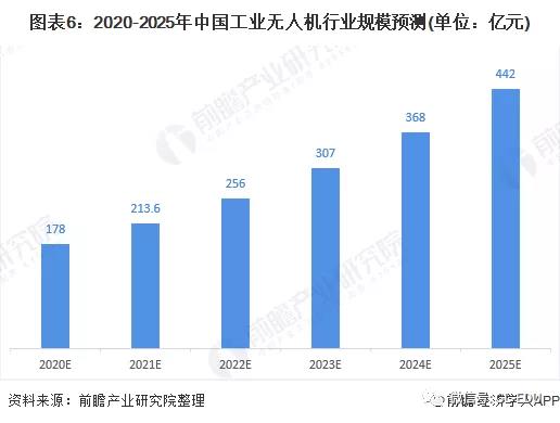 未來,工業無人機行業增長速度仍將保持在高位,根據行業近年來的增長速度及民用無人機市場的占比測算,到2025年,工業級無人機行業規模將接近450億元,平均增速將在20%左右。