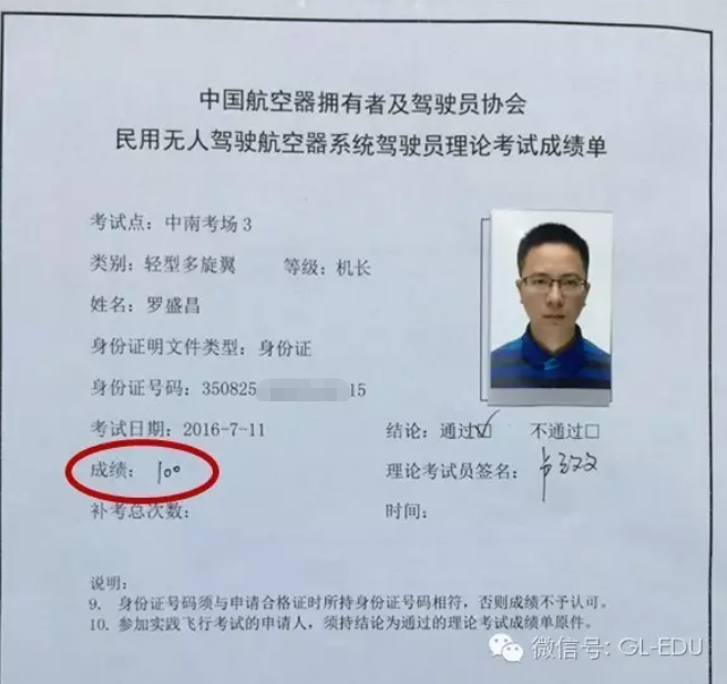 全球鷹無人機培訓學校在本次大考期間又取得好成績。理論成績平均91分,其中一名學員(羅盛昌)20分鐘交卷,獲得100分的滿分。再次檢驗了教學體系和方法的有效性和穩定性。